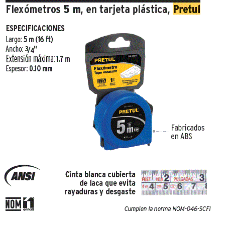 Volver a: Ferretería FLEXOMETRO Descripción FLEXOMETRO AZUL 5M CINTA 3/4 PLGS MARCA PRETUL TARJETA PLASTICA CODIGO 21610 Haga una pregunta sobre este producto Comentarios Aún no hay comentarios para este producto.