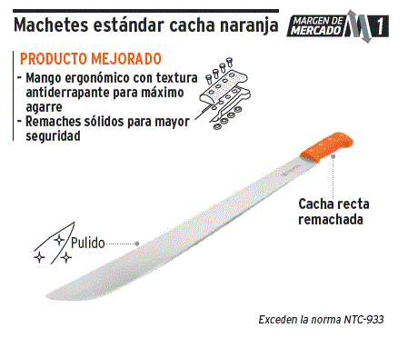 Volver a: Ferretería MACHETE Descripción MACHETE ESTANDAR DE 20 PULGS CACHA NARANJA T-460-20P CODIGO 15886 Haga una pregunta sobre este producto Comentarios Aún no hay comentarios para este producto.