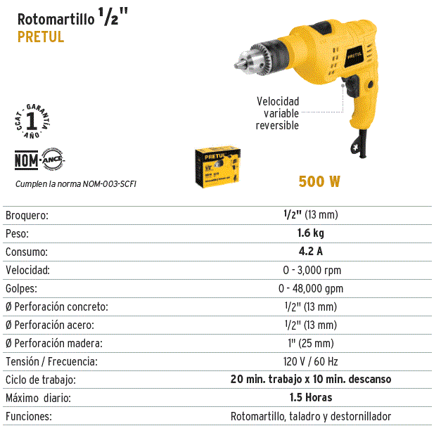Volver a: PRETUL ROTOMARTILLO Descripción ROTOMARTILLO DE 1/2" 500 W MARCA PRETUL CODIGO 24058 Haga una pregunta sobre este producto Comentarios Aún no hay comentarios para este producto.