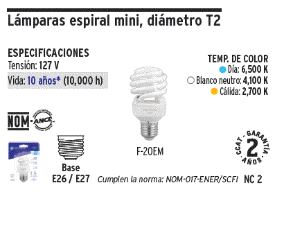 TUBO LED 20W 110-277V 4100K 2000LM, 9403240ABRAZADERA Volver a: Material eléctrico FOCO Descripción FOCO DE 20W ESPIRAL MINI T2 MARCA VOLTECK CODIGO 48206 Haga una pregunta sobre este producto Comentarios Aún no hay comentarios para este producto.