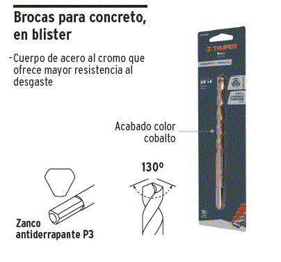 REDUCCIONAzadón Córdoba / (175x235 mm) Volver a: Ferretería BROCA Descripción BROCA PARA CONCRETO EN BLISTER DE 1/2 x 6 PLGS BCT- 1/2 x 6-B CODIGO 12760 Haga una pregunta sobre este producto Comentarios Aún no hay comentarios para este producto.