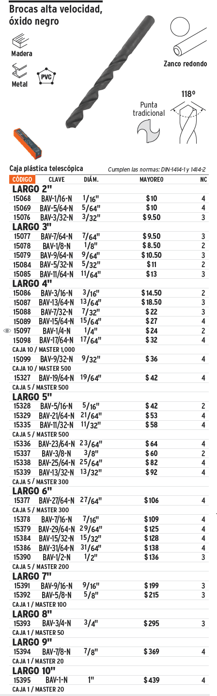REDUCCIONAzadón Córdoba / (175x235 mm) Volver a: Ferretería BROCA Descripción BROCA DE ALTA VELOCIDAD OXIDO NEGRO 1/4 PLGS CODIGO 15097 Haga una pregunta sobre este producto Comentarios Aún no hay comentarios para este producto.