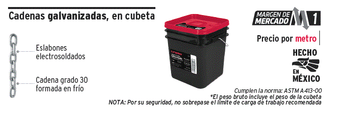 REDUCCIONAzadón Córdoba / (175x235 mm) Volver a: Ferretería CADENA Descripción CADENA GALVANIZADA GRADO 30 FIERO LIMITE DE CARGA 181 KG / 1/8" CODIGO 44269 Haga una pregunta sobre este producto Comentarios Aún no hay comentarios para este producto.