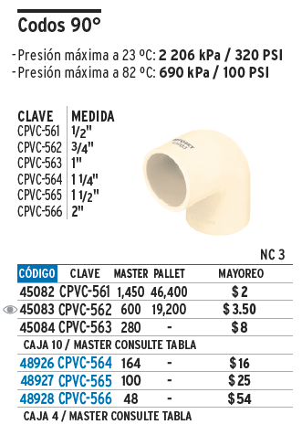 REDUCCIONAzadón Córdoba / (175x235 mm) Volver a: Ferretería CODO Descripción CODO 90° DE CPVC DE 1/2 PLGS CODIGO 45082 Haga una pregunta sobre este producto Comentarios Aún no hay comentarios para este producto.
