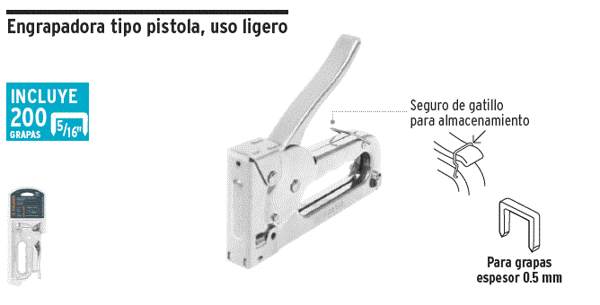 REDUCCIONAzadón Córdoba / (175x235 mm) Volver a: Ferretería ENGRAPADORA Descripción ENGRAPADORA TIPO PISTOLA PARA 1/4 PLGS Y 5/16 PLGS CON 200 GRAPAS CODIGO 17977 Haga una pregunta sobre este producto Comentarios Aún no hay comentarios para este producto.
