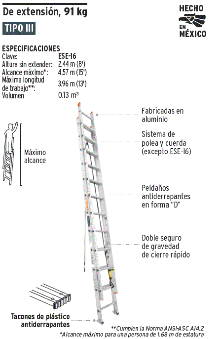 REDUCCIONAzadón Córdoba / (175x235 mm) Volver a: Ferretería ESCALERA Descripción ESCALERA DE EXTENSION DE 16 PELDAÑOS TIPO III ESE-16 CODIGO 16026 Haga una pregunta sobre este producto Comentarios Aún no hay comentarios para este producto.
