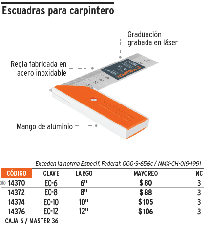 REDUCCIONAzadón Córdoba / (175x235 mm) Volver a: Ferretería ESCUADRA Descripción ESCUADRA PARA CARPINTERO #8 CDIGO 14372 Haga una pregunta sobre este producto Comentarios Aún no hay comentarios para este producto.