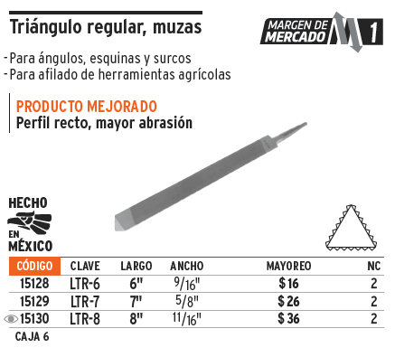 REDUCCIONAzadón Córdoba / (175x235 mm) Volver a: Ferretería LIMA Descripción LIMA TRIANGULO REGULAR MUZA # 7 CODIGO 15129 Haga una pregunta sobre este producto Comentarios Aún no hay comentarios para este producto.