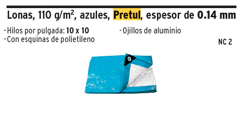 Volver a: Ferretería LONA Descripción LONA PRETUL DE 5 X 6 METROS COLOR AZUL CODIGO 23736 Haga una pregunta sobre este producto Comentarios Aún no hay comentarios para este producto.