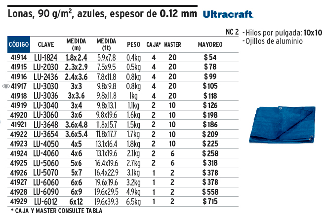 REDUCCIONAzadón Córdoba / (175x235 mm) Volver a: Ferretería LONA Descripción LONA ULTRA 4.0 X 6.0 M COLOR AZUL CODIGO 41924 Haga una pregunta sobre este producto Comentarios Aún no hay comentarios para este producto.