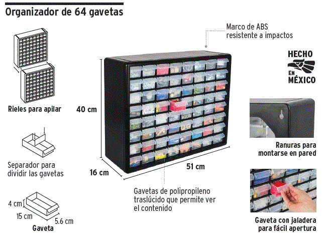 REDUCCIONAzadón Córdoba / (175x235 mm) Volver a: Ferretería ORGANIZADOR Descripción ORGANIZADOR CON 64 COMPARTIMIENTOS ORG-64 CODIGO 10895 Haga una pregunta sobre este producto Comentarios Aún no hay comentarios para este producto.
