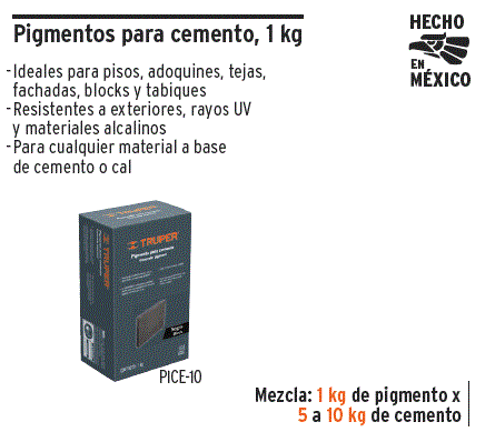 REDUCCIONAzadón Córdoba / (175x235 mm) Volver a: Ferretería PIGMENTO Descripción PIGMENTO PARA CEMENTO DE 1 KG COLOR NEGRO PICE-10 CODIGO 18072 Haga una pregunta sobre este producto Comentarios Aún no hay comentarios para este producto.