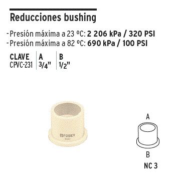 REDUCCIONAzadón Córdoba / (175x235 mm) Volver a: Ferretería REDUCCION Descripción REDUCCION BUSHING FOSET, PRESION MAX 23 C° 2 206 KPA/ 320 PSI CODIGO 45062 Haga una pregunta sobre este producto Comentarios Aún no hay comentarios para este producto.