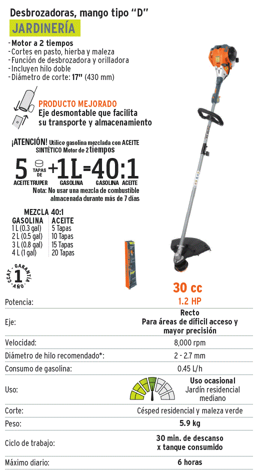 REDUCCIONPIEDRA Volver a: TRUPER DESBROZADORA Descripción 'DESBROZADORA A GASOLINA DE 30CC 17 PLGS DE CORTE RECTA CODIGO12497 Haga una pregunta sobre este producto Comentarios Aún no hay comentarios para este producto.