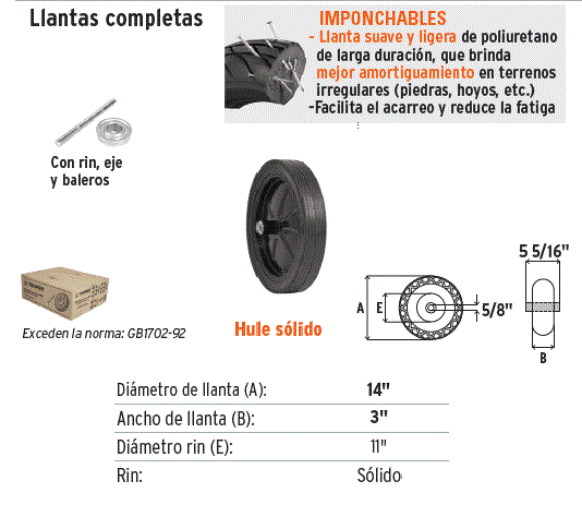 REDUCCIONPIEDRA Volver a: TRUPER LLANTA Descripción LLANTA SOLIDA DE 14 PULGS CON RIN EJE Y BALEROS PARA CARRETILLA- RSO CODIGO 11862 Haga una pregunta sobre este producto Comentarios Aún no hay comentarios para este producto.